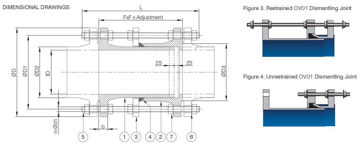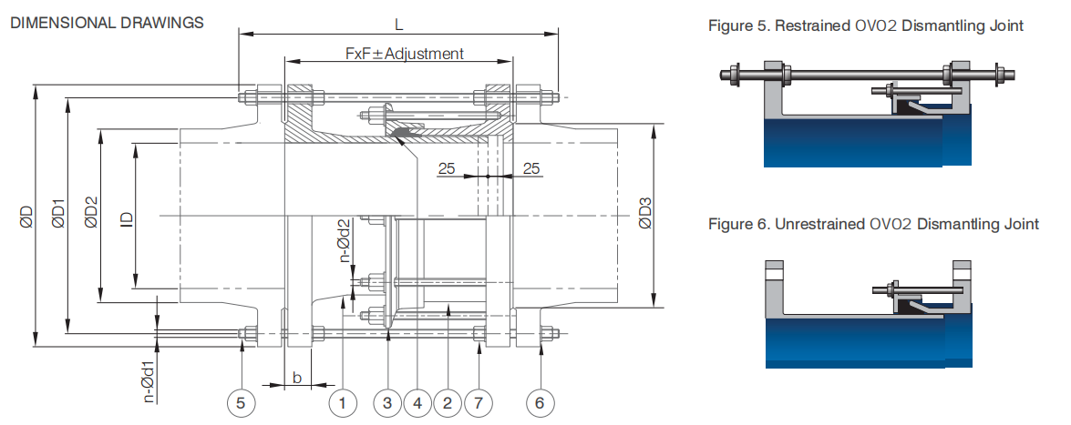 DN ID L FxF Adjustment b ØD ØD1 ØD2 ØD3 n-Ød1 n-Ød2 NO. OF TIE RODS