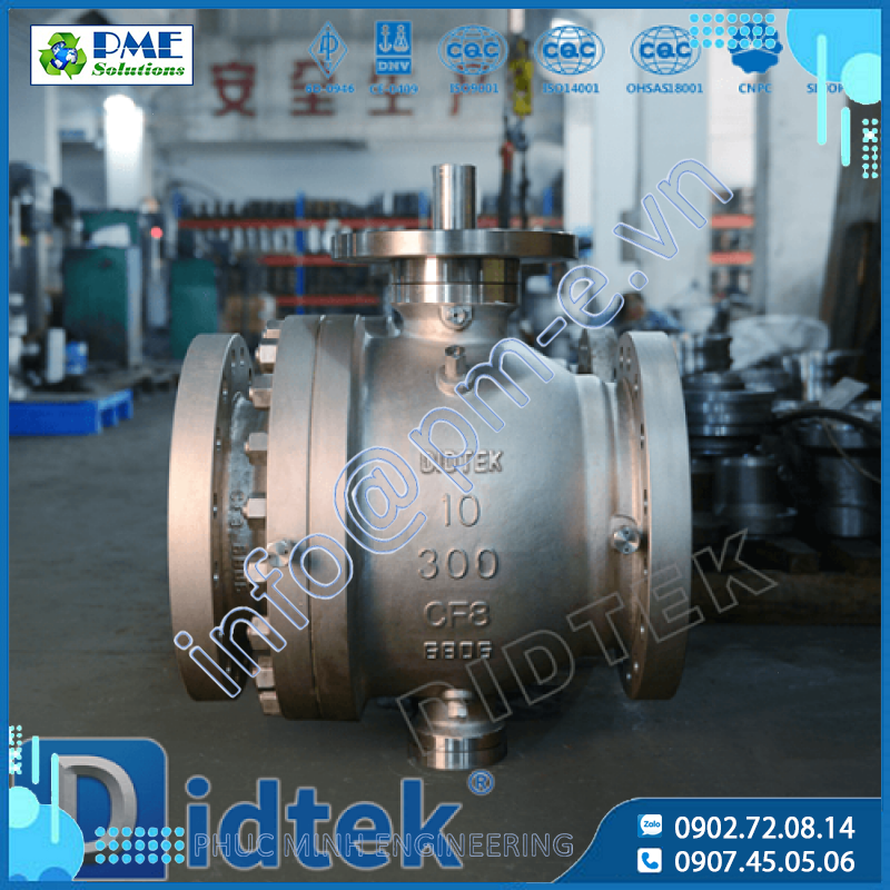 Van bi đúc dạng Trunnion Didtek được sản xuất theo phiên bản mới nhất của Tiêu chuẩn API 6D và được thử nghiệm theo Tiêu chuẩn API 598.