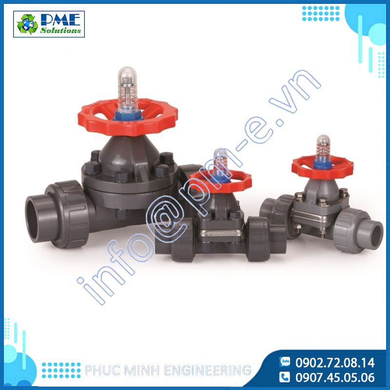 TRUE UNION DIAPHRAGM VALVE – van màng kết nối Union PVC, PP, PVDF, chống ăn mòn, điều khiển lưu lượng chính xác, dễ bảo trì. Phù hợp hệ hóa chất, nước, bùn. Liên hệ Phúc Minh.